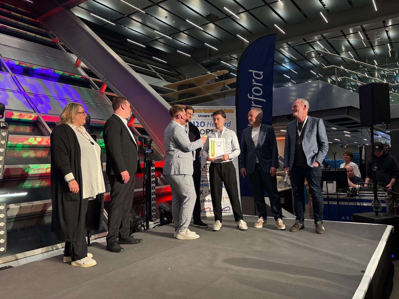 Zunächst nahm Holger Freye anstelle seines verhinderten Enkelsohnes Marlon Menzler auf der Jugendveranstaltung in der Rubrik „Besondere Talente“ (Westfalenmeisterschaften im Einzel und Doppel U16) die Auszeichnung entgegen.